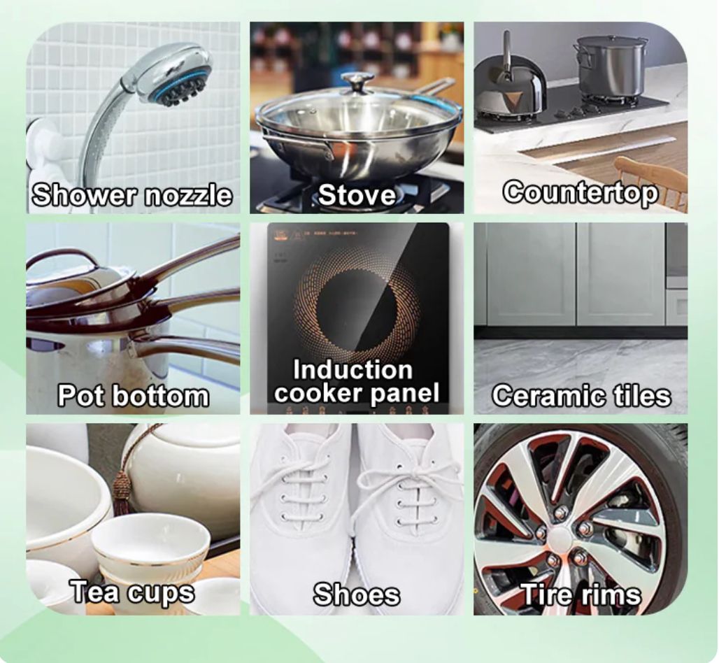 Perfect for kitchens, bathrooms, utensils, chimneys, tiles, steel surfaces & more.